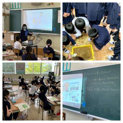 5年生の理科では、流れる水の働きについて実験で結果を確かめています。
