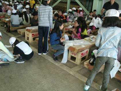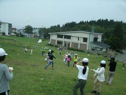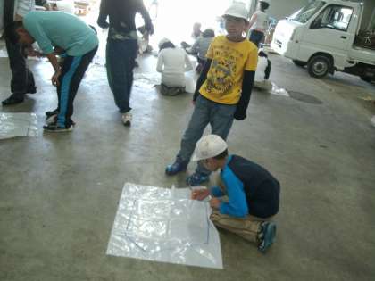 ゴミ袋と竹ひごで「ぐにゃぐにゃだこ」を作りました。高原の風をうけて、天高く舞い上がれ!