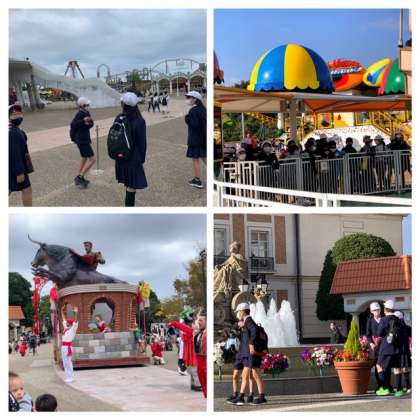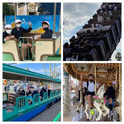 多くの団体客で待ち時間も出ていますが、班で相談しながら効率よく回っているようです。