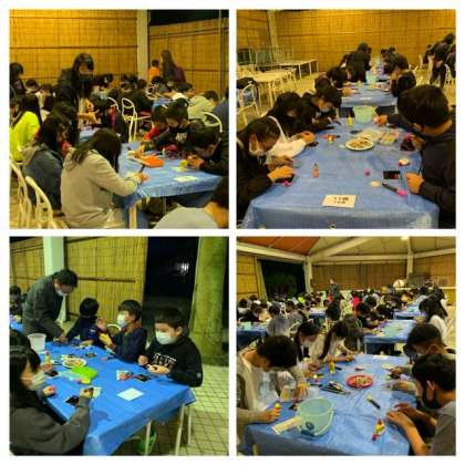 貝殻を細かく切ったり、ニスを塗ったりして仕上げています。