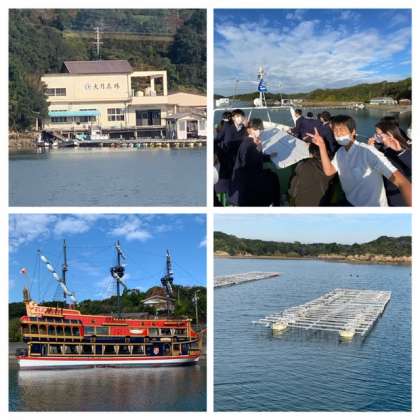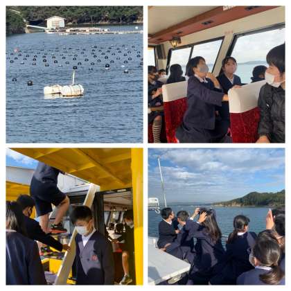 リアス式海岸である志摩半島や英虞湾での真珠・青のりなどの養殖について学びました。