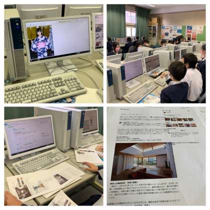 5年生が和の文化についてパソコンを使って検索し、必要な情報をプリントアウトしていました。
