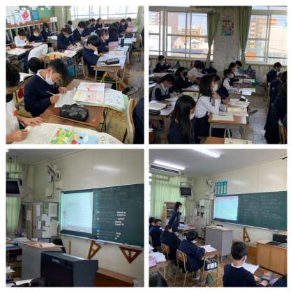 5年生の家庭科では、買い物について工夫したことを振り返りながら交流しています。