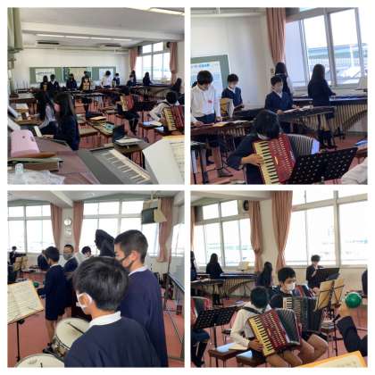 6年生が合奏練習をしています。他の楽器の音を感じながら合奏ができているでしょうか・・・