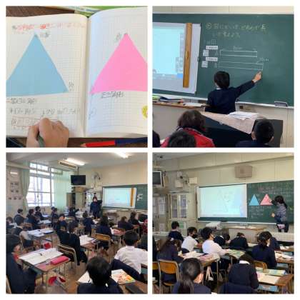3年生の算数では、二等辺三角形と正三角形の核の大きさについて調べています。