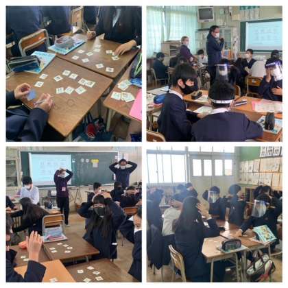 6年生の英語では、英語カルタをしています。