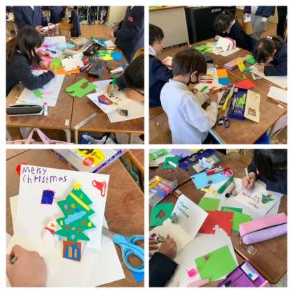 2年生がクリスマスカードを作っています。