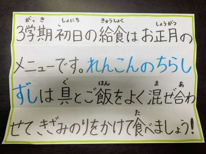 今日は正月の行事献立です