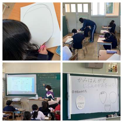 1年生の図画工作では、「かみはんがで じぶんのかおをつくろう」に取り組んでいます。