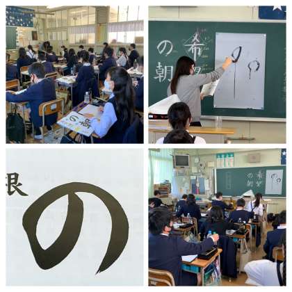 6年生の書写では、「の」の運筆について気をつけるポイントを意識して書いています。