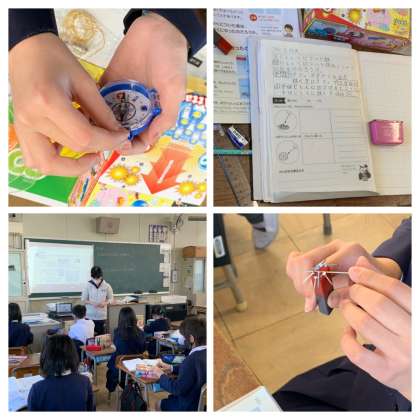 理科では、磁石についた鉄は磁石になるかを予想して調べています。