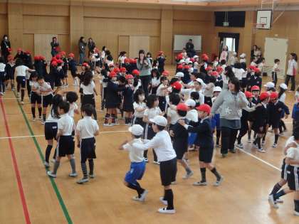 姫島、福小学校の児童たちと一緒に、もうじゅう狩り、じゃんけん列車をして遊ぶことができたので、