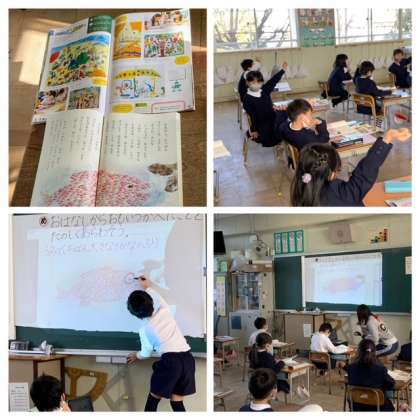 1年生の図画工作では、お話から思い浮かべたことを絵に表しています。