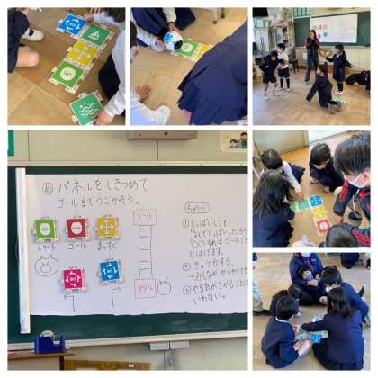 プログラミング学習では、パネルをしきつめてゴールまで動かすルートを考えています。