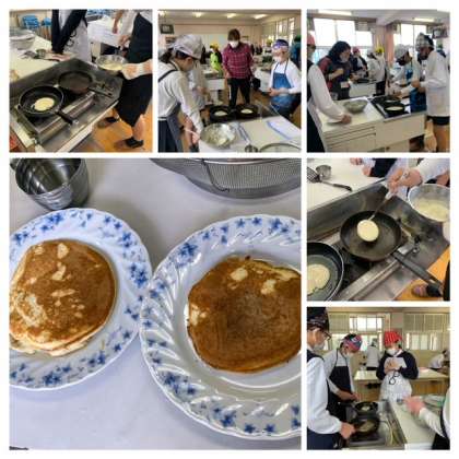 油や火の加減に気をつけながら、楽しくホットケーキを焼いています。