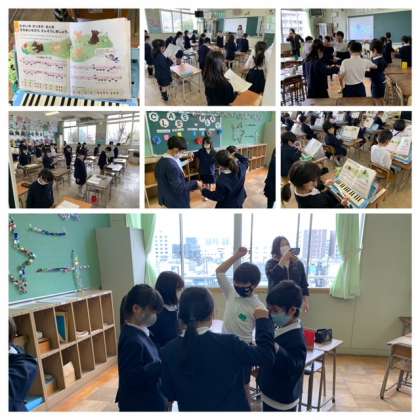 1年生の音楽では、こいぬのマーチを鍵盤ハーモニカで演奏しています。