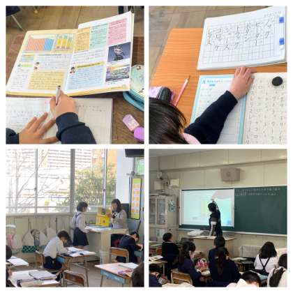 1年生がかん字練習をしています。