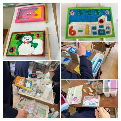 6年生の図画工作では、メモリアルボックスに色をつけたり、ニスを塗ったりしています。