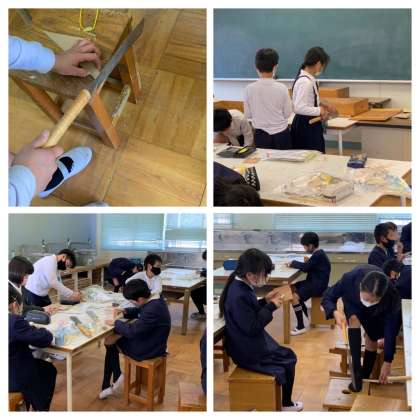 4年生の図画工作では、板材や棒材を加工してフォトスタンドやカレンダー付ボックスなどを作っています。