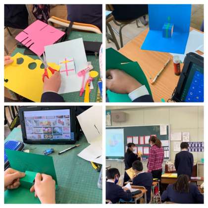 6年生の図画工作では、ポップアップカードを作っています。