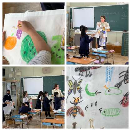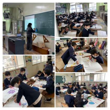1年生・3年生では、作品袋に好みの絵をかいて思い出にしています。