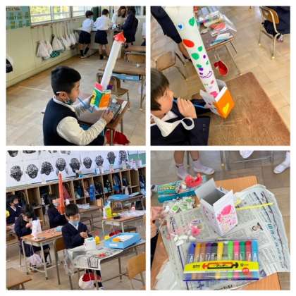 1年生の図画工作では、「にょきにょきとびだせ」に取り組んでいます。