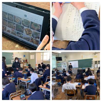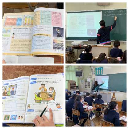 5年生の英語では、写真を見せながら自分の家族を紹介している英文を聞き、わかったことを表にまとめています。