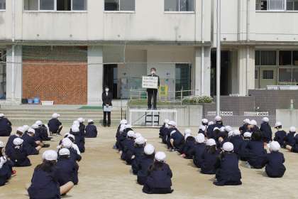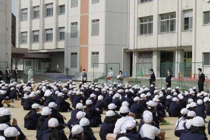 年度初めということで、小学校でのくらしかたについてのプリントを読み直してみようということを確認し、最後に校歌を歌いました。