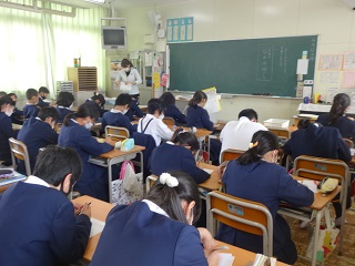 6年生の学級での授業の様子です。新しい担任の先生と一生懸命学習をしていました。