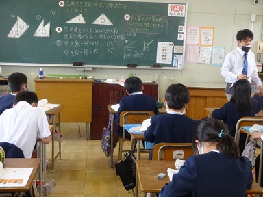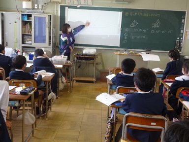 4月16日(金)4年生が算数科「角の大きさの計算」の学習をしていました。三角定規の角の大きさをもとに重ね方によって、どのような角の大きさになるかを計算で求める学習です。みんな真剣に取り組んでいました。