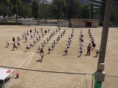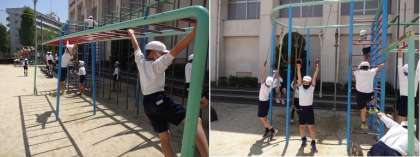 トラック一周のタイムを計ったり、うんていやのぼり棒で力だめしの運動をしたりしていました。