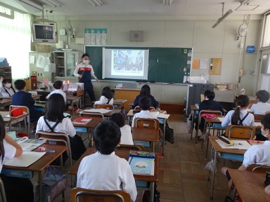 5月10日(月)4年生の学習の様子です。算数科や社会科の学習などに取り組んでいました。先生のお話をよく聞いて頑張っていました。