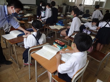 5月12日(水)4年生が国語科の学習をしていました。漢字辞典を使って、「連」という字の調べ方を学んでいました。