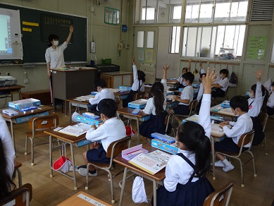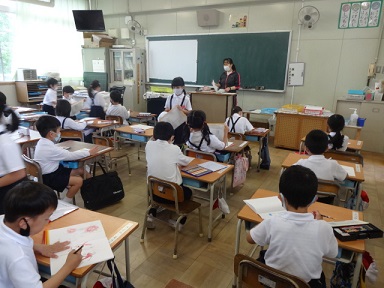 午前中4時間の学習が始まり、1年生も熱心に国語や算数の学習に取り組んでいました。