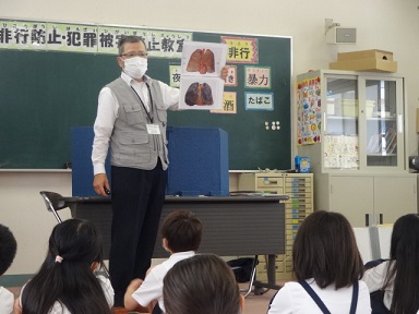 5年生が、梅田少年サポートセンターの方に来ていただき、非行防止教室に取り組みました。非行の意味や種類からそれを防止するためどんなことに気をつければよいか教えてもらいました。
