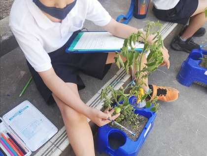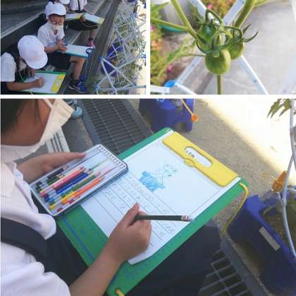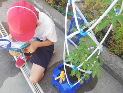 6月9日(水)2年生がミニトマトの観察をしていました。