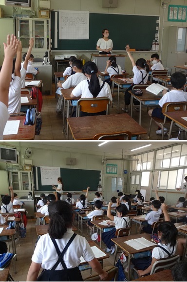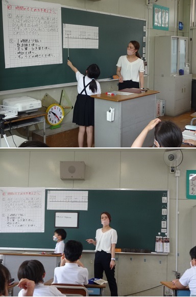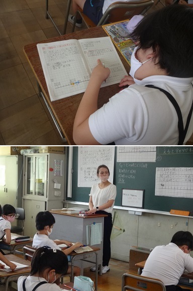 6月8日(火)3年生が算数科「時こくと時間」の学習をしてました。問題は「西淀川ゆうびん局に着く時こくは9時50分、出る時こくは10時25分です。ゆうびん局にいる時間はどれだけですか?」でした。時間を求める問題で、見通しをもとに数直線や計算式を考えてノートにかき、発表していました。どの子もみんな真剣に取り組んでいました。