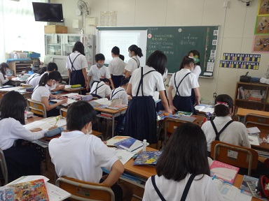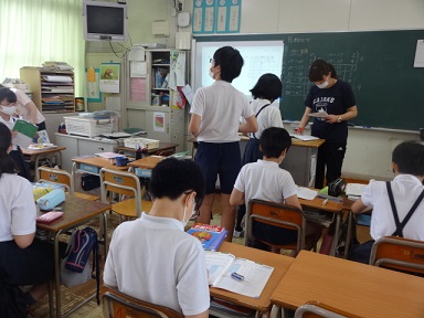 6年生が算数科の学習を習熟度別のグループでしていました。2クラスを3グループに分けて、「資料の調べ方」の学習を理解しやすいコース別で取り組んでいました。