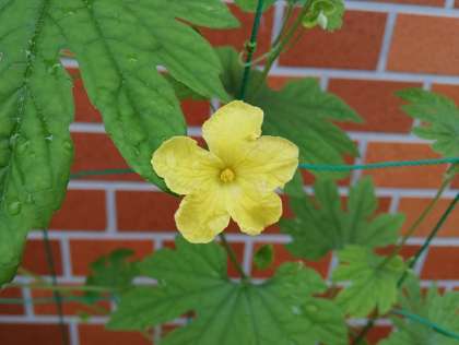 先週金曜日の給食の「ゴーヤチャンプルー」に登場した【にがうり】、姫里小学校でも壁面緑化のために育てています。