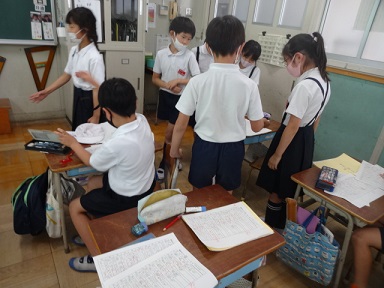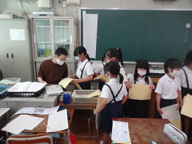 7月14日(水)3年生が漢字テストを返してもらい、まちがいなおしをしたり、先生からがんばったシールをもらったりしていました。