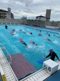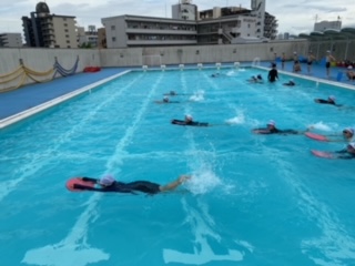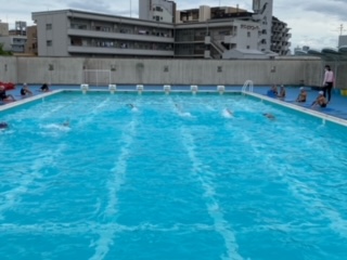 5・6時間目は3年1組のプール水泳でした。音楽を使って水慣れをしたり、ビート板を使ってバタ脚練習や、クロール、そして今日は平泳ぎの練習もしたりしました。