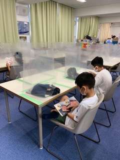 7月21日(水)夏休み初日から図書館開放に子どもたちが来ていました。図書館ボランティア「どんぐり」さんもお世話いただき、気に入った本を熱心に読んでいました。