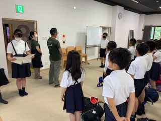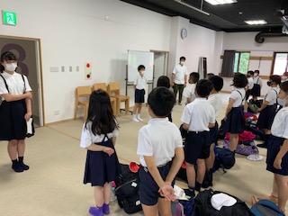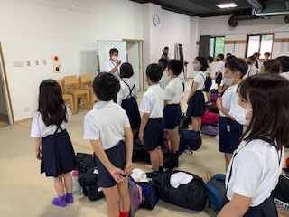 林間学習の最後に、閉舎式を行いました。お世話になった宿舎の方に感謝の意を言葉を伝えました。