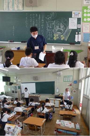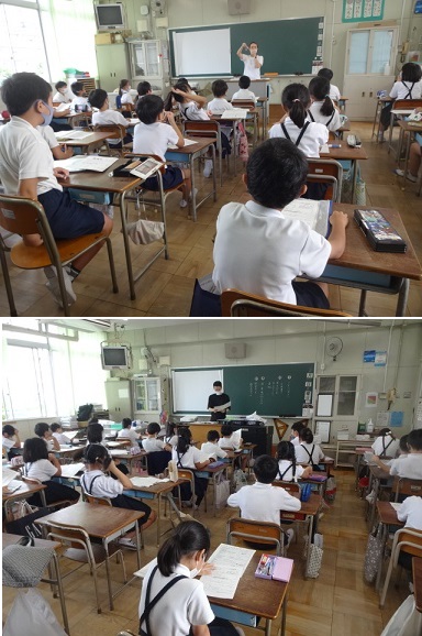 始業式の後、各学級では夏休みの宿題や作品を見たり、新しい教科書をもらったりして、久しぶりに会った先生や友だちと活動しました。