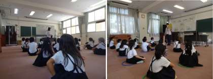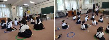1年生が発育測定の前に保健指導として「あさごはんの3つのスイッチ」について養護教諭の先生と学習していました。赤・黄・緑それぞれのグループの食材を朝ごはんで食べることで、1日を元気に過ごすことができることを学びました。