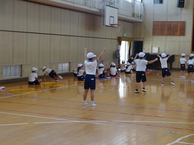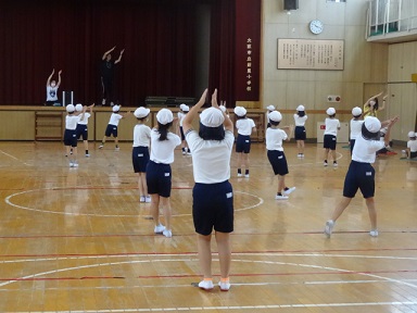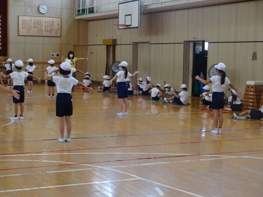 9月6日(月)2年生が運動会の団体演技の練習を体育館でしていました。