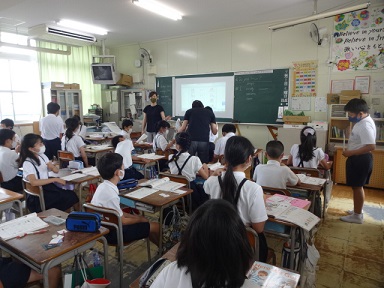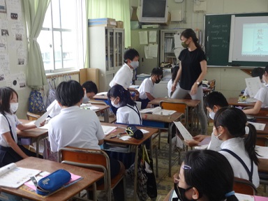 西淀中学の英語の先生に来ていただき、担任の先生と一緒に楽しく学んでいました。