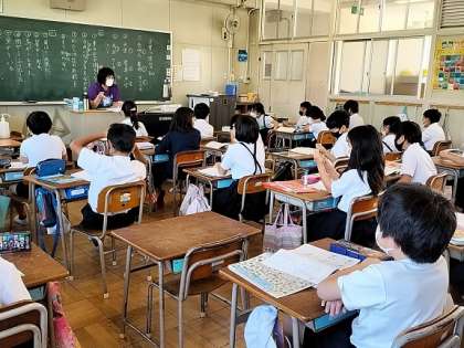 4年生が国語で「上手に会話するポイント」について学習していました。『友達と一緒に博物館に行きたいときに、どのように声をかけて誘うのがいいか』を例に、楽しそうに学習していました。