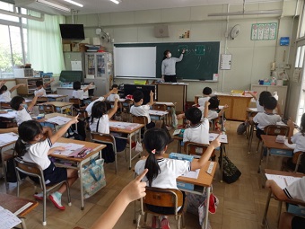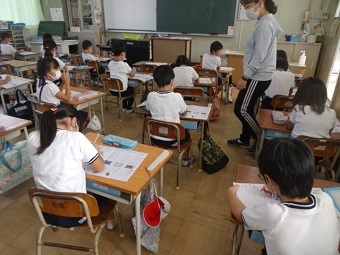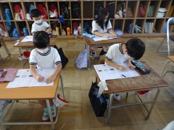 9月15日(水)1年生が国語の時間に「カタカナの練習」をしていました。書き順や形の取り方など熱心に練習していました。