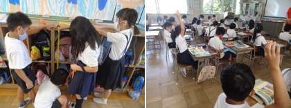 1年生が算数科の時間に、「たかさをくらべる」学習をしていました。